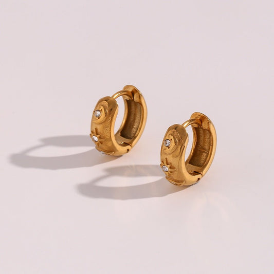 Sun and Moon Hoop Earrings in PVD Gold Plating